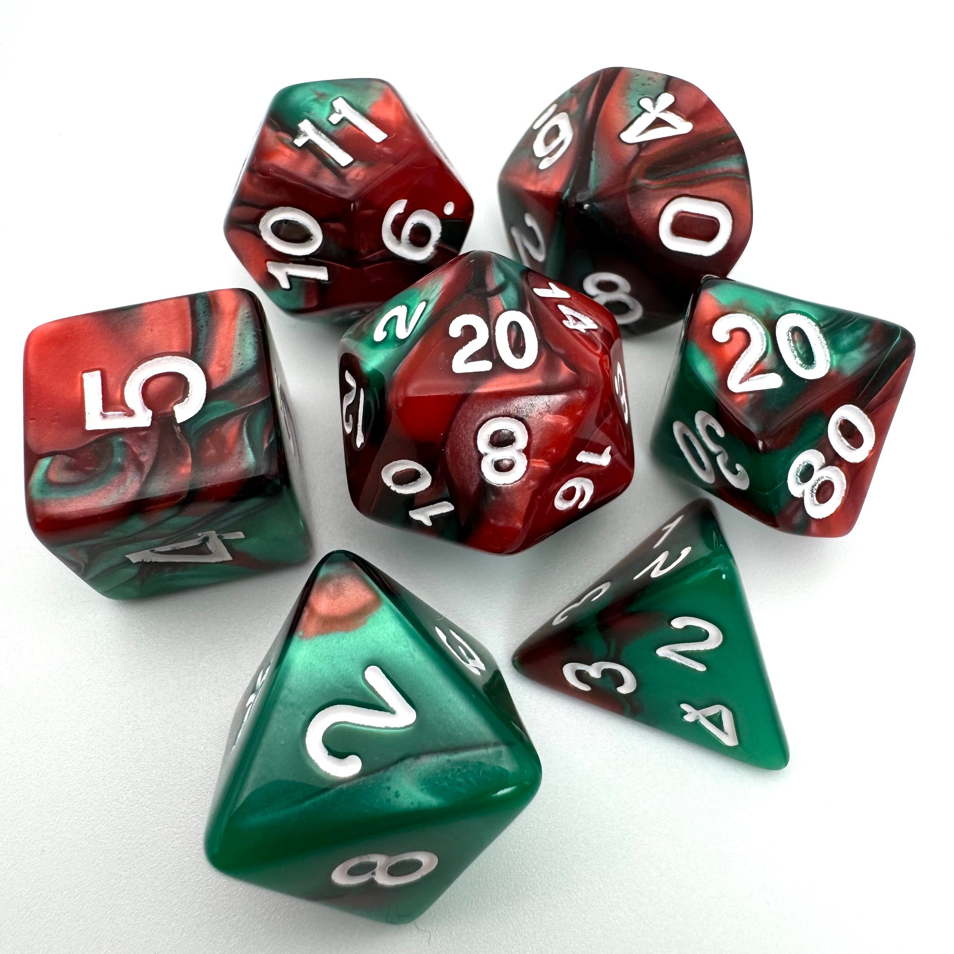 Red and green swirls.